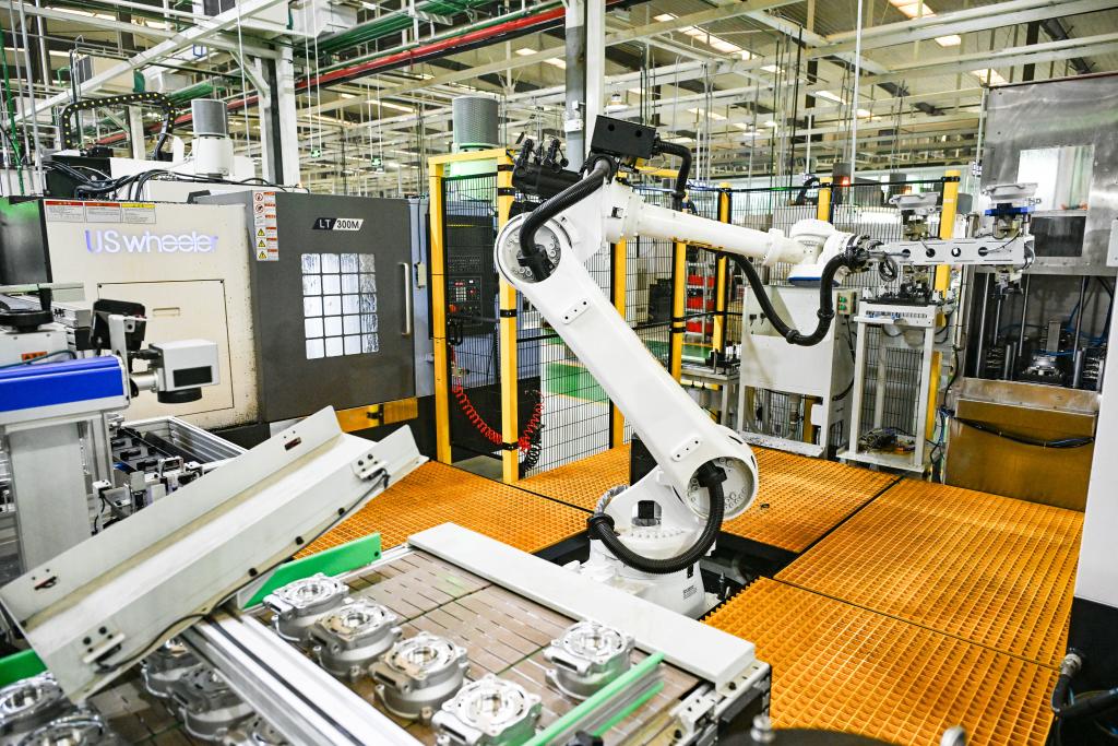 这是5月9日正在位于北碚区的沉庆顺多利机车无限义务公司精工拍摄的从动化出产功课现场。记者 王全超 摄。