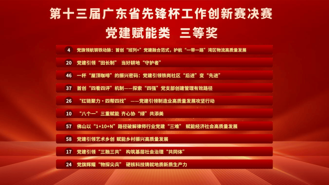 市工业和消息化局参赛项目《“红链聚力·四帮四找”——党建引领制制业高质量成长攻坚步履》从全省5000多个项目中脱颖而出,荣获第十三届广东省“前锋杯”工做立异大赛党建赋能类三等。该项目紧扣“抓党建促成长 聚合力谋新篇”从题,帮企业找政策、帮企业找资金、帮企业找平台”四大步履,鞭策党建资本精准对接企业需求,正在稳链强链、帮企纾困、立异驱动等方面取得显著成效。